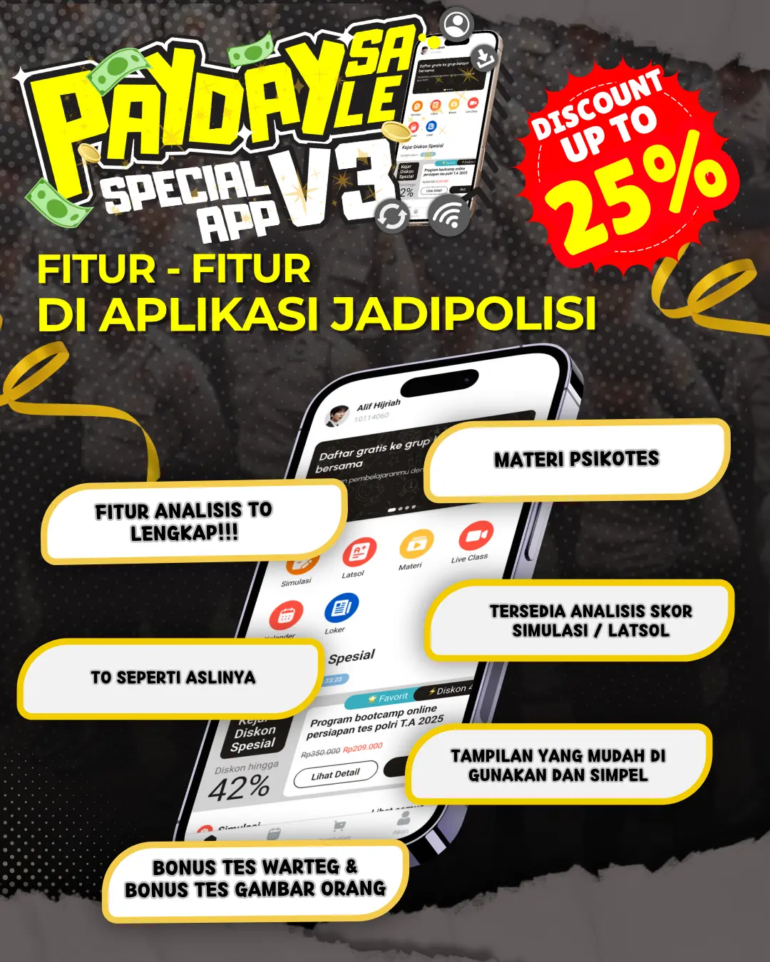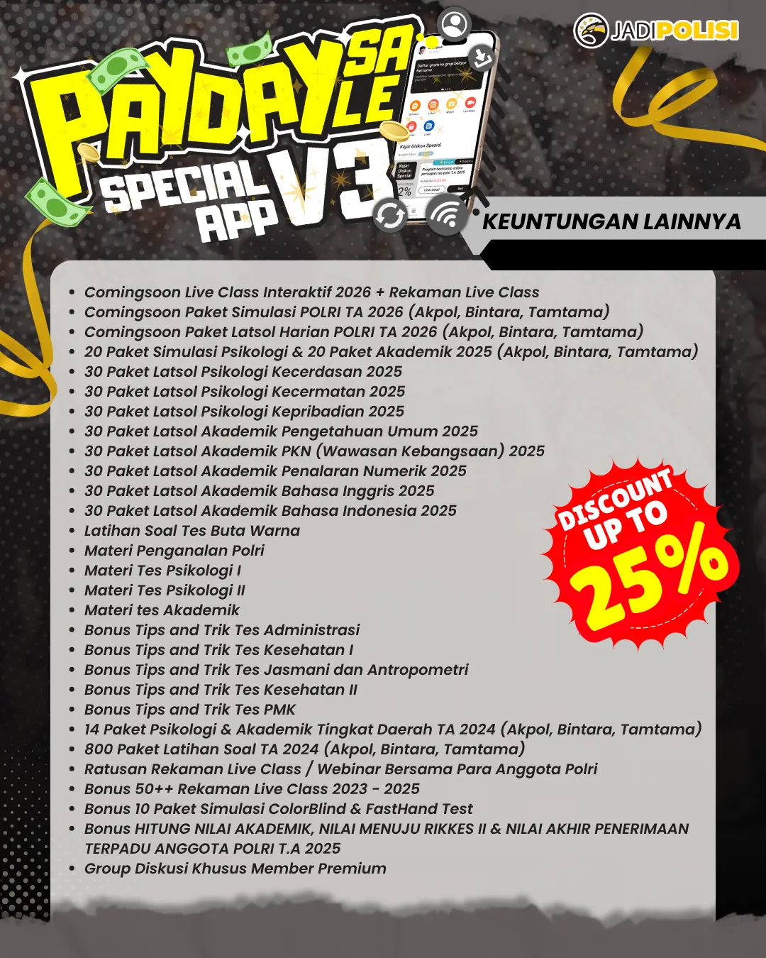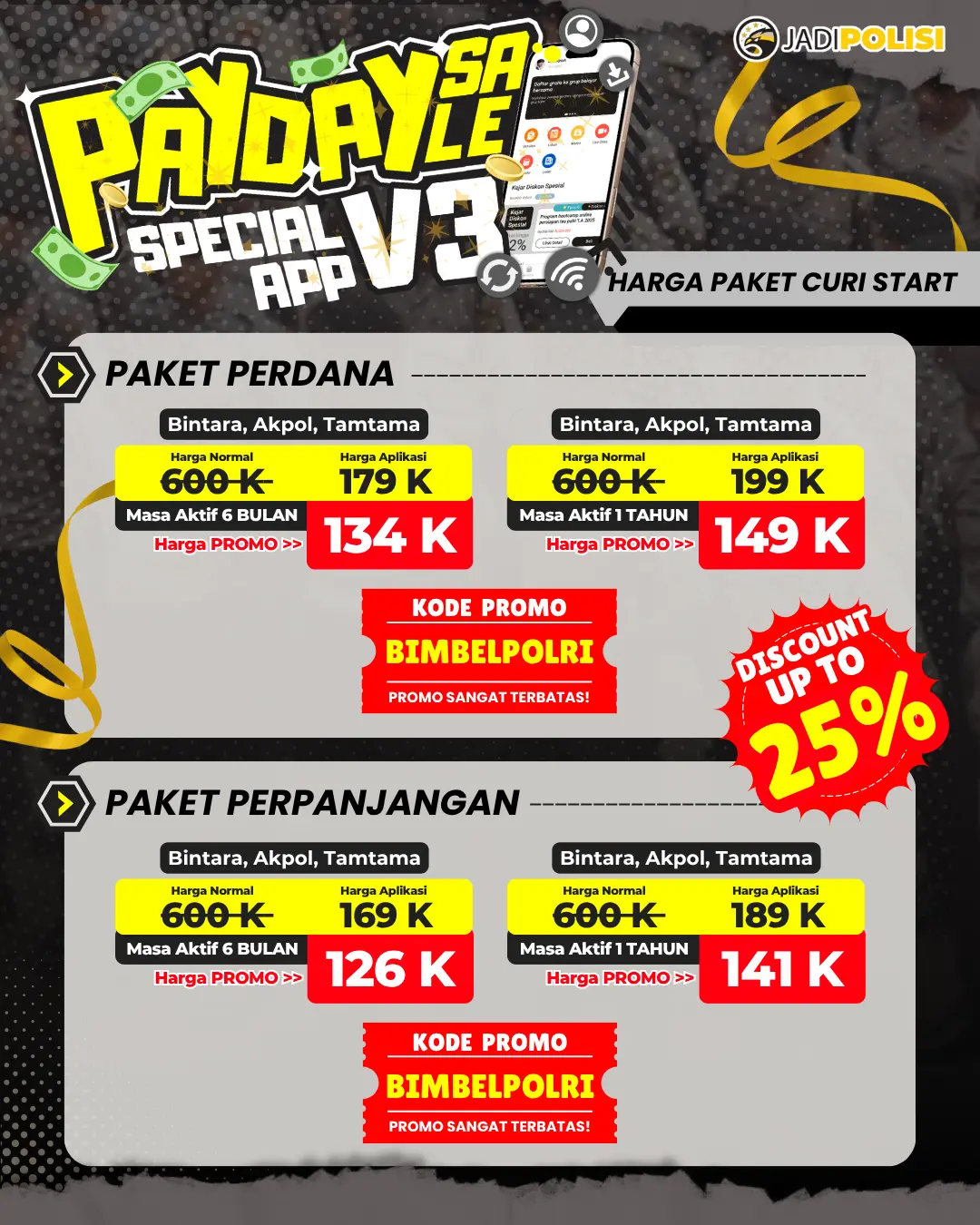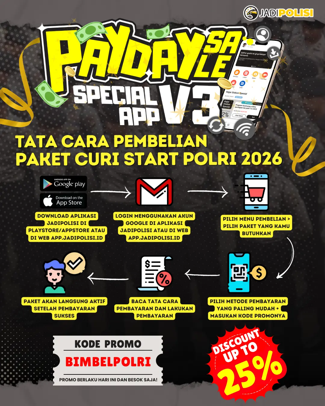 - Gunakan Kode Promo: Masukkan kode “BIMBELPOLRI” untuk mendapat diskon spesial sesuai poster promo