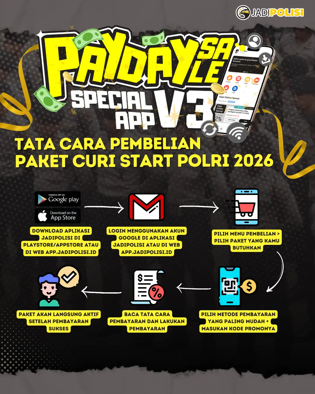 - Unduh Aplikasi JadiPOLISI: Temukan aplikasi JadiPOLISI di Play Store atau App Store, atau akses langsung melalui website.